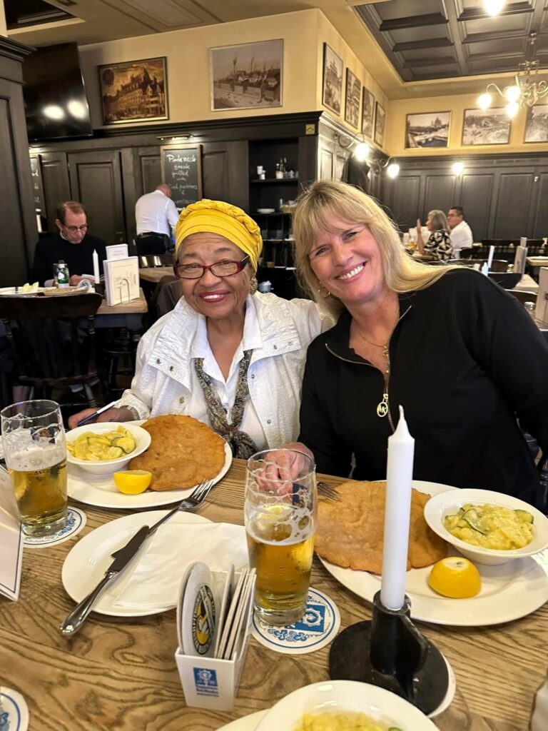 I would learn much about the shifting sands of German history and experience the food culture of bread, sausages, fleischsalat (Bologna salad) and beer in Germany. The food was terrific ranging from popular street foods like currywurst to Schnitzel and Pork Knuckle with sauerkraut. The diversity of foods in Germany is astounding including influences from France, Turkey, Italy and many other countries. Before going to Germany, a beer was just a beer but when I returned to St. Louis and reconnected with friends in the Loop I had a better understanding of their choices. When I got back to St. Louis, I was running some errands between Union Blvd. and DeGiverville and recalled reading that during WWI one of the streets in that area was changed from Berlin Avenue to Pershing Avenue due to anti-German sentiment in St. Louis. I knew of this history and had learned that in Missouri many towns with German names were renamed because of the war and Hitler. There were even POW camps for German soldiers in the Show Me State! I began making interesting connections between people and places. For example, Dr. Selam Deutschmann, a highly regarded Chiropractor on Delmar Blvd., whom I have known for years, is originally from Ethiopia and carries the last name Deutschmann! Why? Selam chose to honor his German adoptive parents from Iowa who were pivotal to his success! When I boarded the plane from Frankfurt to return home, I was reminded that when we are engaged in work that brings people together and we stretch to look for opportunities to do so in unlikely places there is not time to allow the news to affect our dedication. Our work of nurturing authentic relationships with love is the radical remedy for protecting democracy. Finally, just a friendly reminder, potato salad is from Germany and “German Chocolate Cake” is wholly American!
