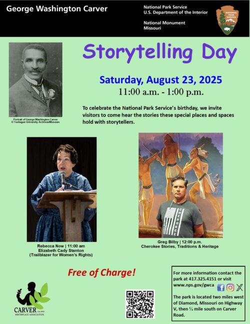 George Washington Carver National Monument 5646 Carver Road, Diamond, MissouriJoin us for a special day celebrating the establishment of George Washington Carver National Monument 82 years ago! Carver Day features programs interpreting the life and legacy of George Washington Carver, a guest speaker, music, and exhibitors. Kids can earn a special Carver Day Junior Ranger badge! A concession stand will be available. This year’s […]
